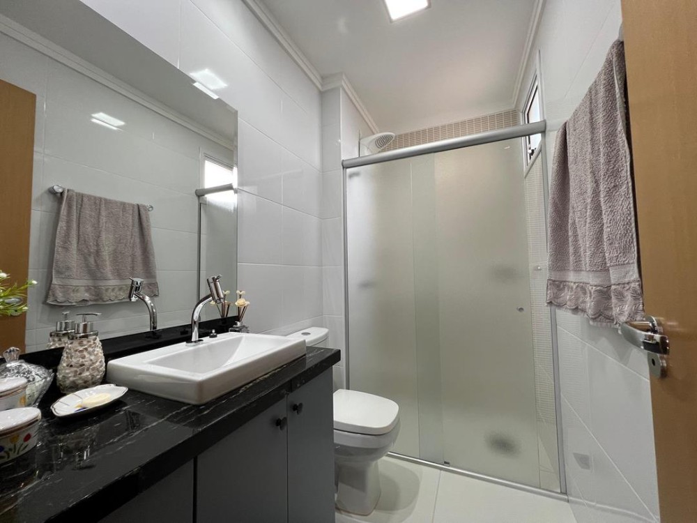 sacada com churrasqueira, lavanderia, 1 banheiro social, 2 vagas de garagem.